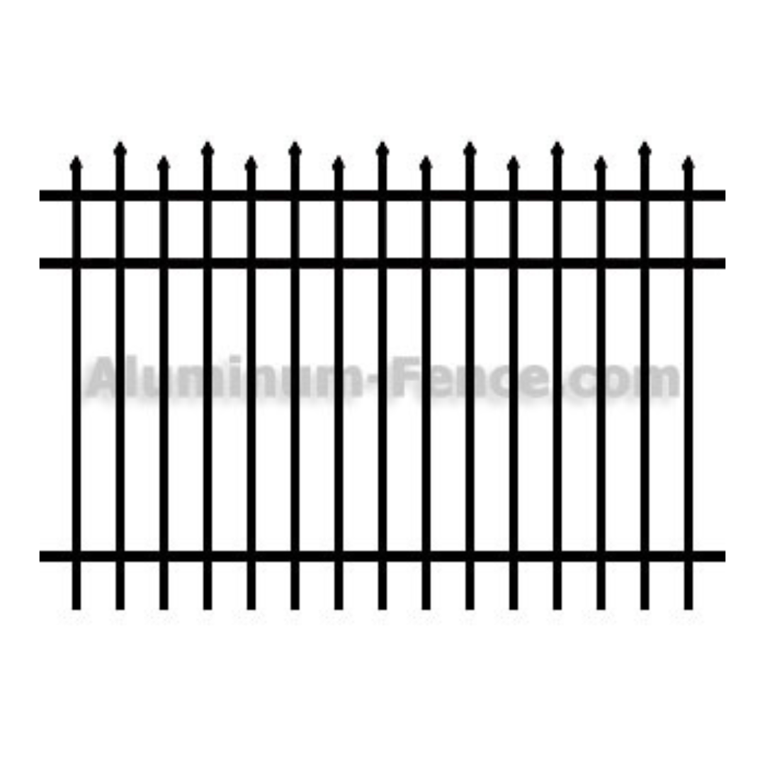 The Jade is 3-rails with alternating spear points heights above top rail aluminum fence. A more decorative old style looks and strong design aluminum fence panel. The Jade design in Gemstone Aluminum™ fencing is one of our best-selling products for quality and style. Gemstone Aluminum™ fencing is our premium product for a lifetime of value for your home or business. Only the strongest aluminum alloys are used and incorporate 20% more aluminum in our fence rails than most competitors. Gemstone has the thickest residential rail at .082. This classic ornamental fence design is available in residential, commercial, and industrial grade aluminum panels. Comes fully assembled and ready to install.